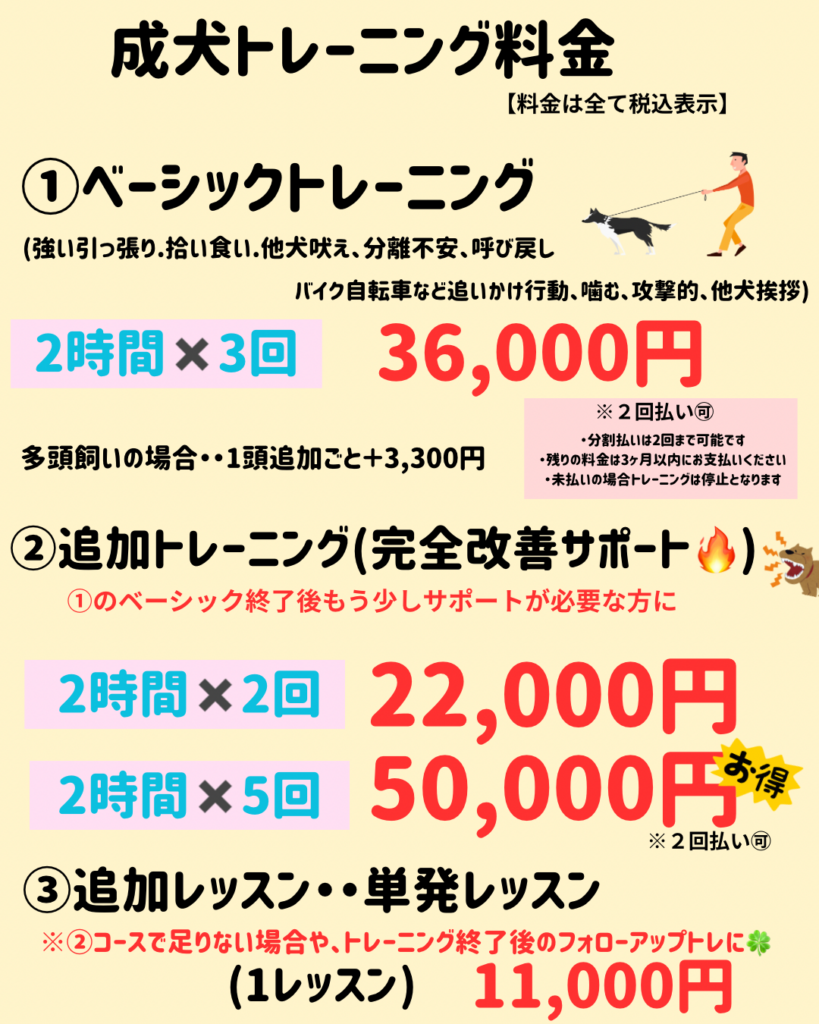 2頭目、3頭目のトレーニング料金は同じトレーニング内容で